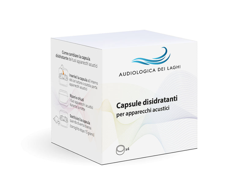 Le capsule deumidificanti rimuovono l'umidità accumulata all'interno degli apparecchi acustici, proteggendoli da possibili guasti causati da condensa e sudore intrappolato tra le loro componenti interne.